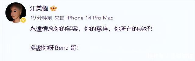 江美仪: “永远怀念你的笑容,你的慈祥你所有的美好,多谢你呀,Benz哥。”