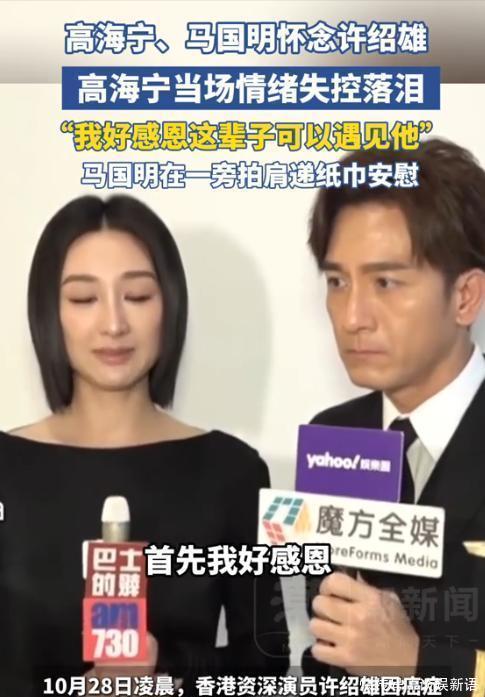 而之后,高海宁、马国明在接受记者采访时,也对许绍雄这件事,表现得很伤心。 尤其是高海宁,在谈到“我好感恩,这辈子可以遇见”他后,眼泪不经意,夺眶而出,现场情绪顿时失控。 而旁边的马国明,在一旁拍着她的肩膀以示安慰,同时还给她递上了纸巾。