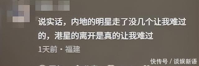 “说实话,内地的明星走了,没几个让我难过的,港星的离开,真的让我难过。” 网友之所以,会有这样很深的感慨,大概是因为他们曾经陪伴着我们,走过青春,是我们回忆中密不可分的一分子。